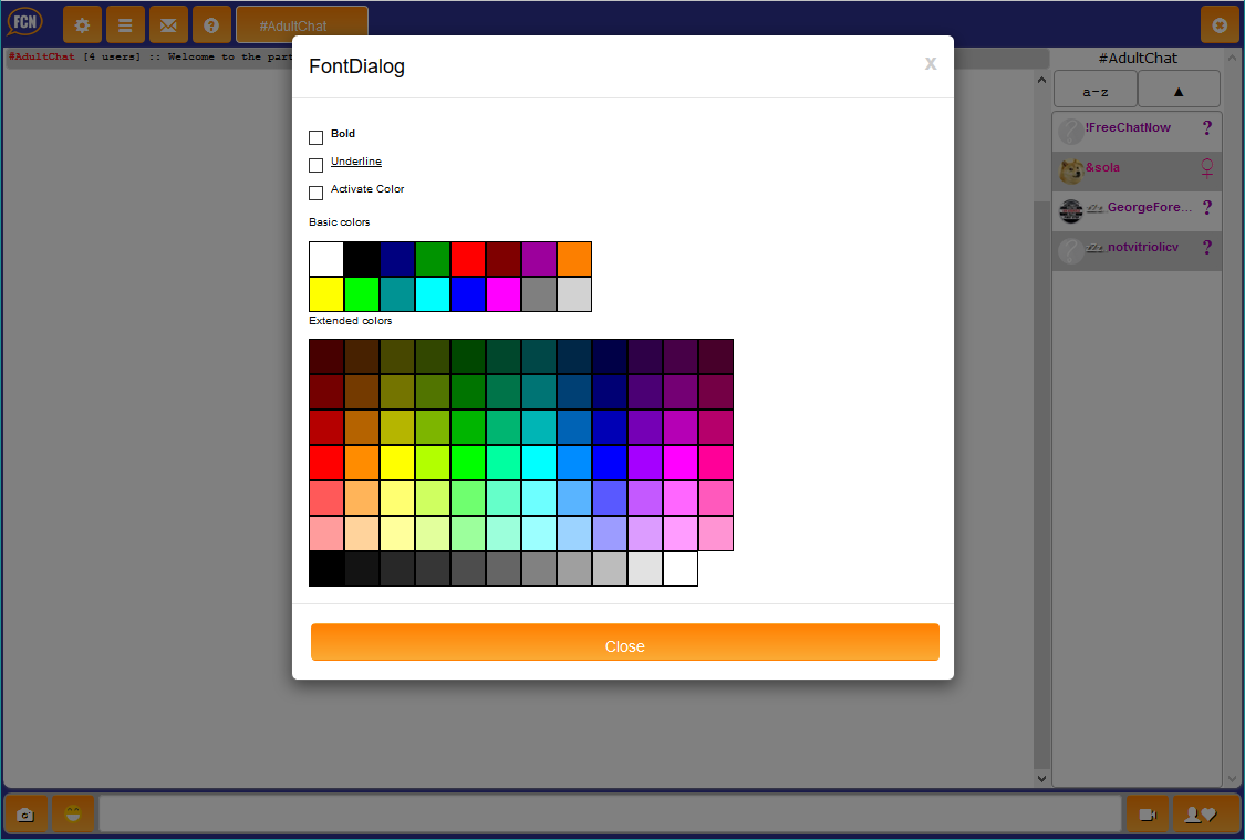 You can set any text color from this selection that you would like, or set your text to be bold or underlined. To somewhat curb abuse, text background color cannot be set. The "activate color" checkbox lets you enable or disable the color selection you have made. If not checked, you will use the default font color.