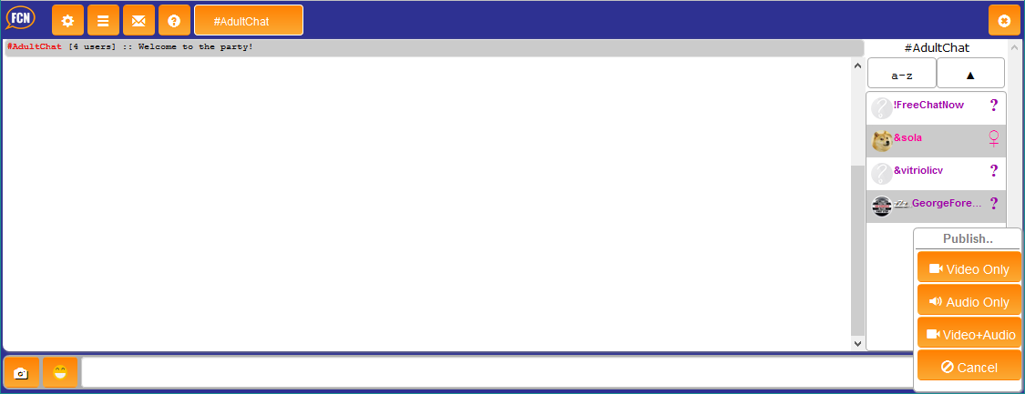 In addition to basic chat functions, this chat client supports streaming from your webcam and/or microphone, regardless of whether you are using a desktop, laptop, phone, or tablet. So long as you haven't disabled these features in the options dialogs previously explained, all you need to do is click the webcam button, and you will be presented with some streaming options.